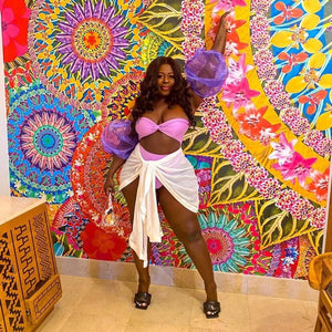 I wore this set on vacation and received tons of compliments. It fit well, It was true to Size, and the colors are so beautiful.